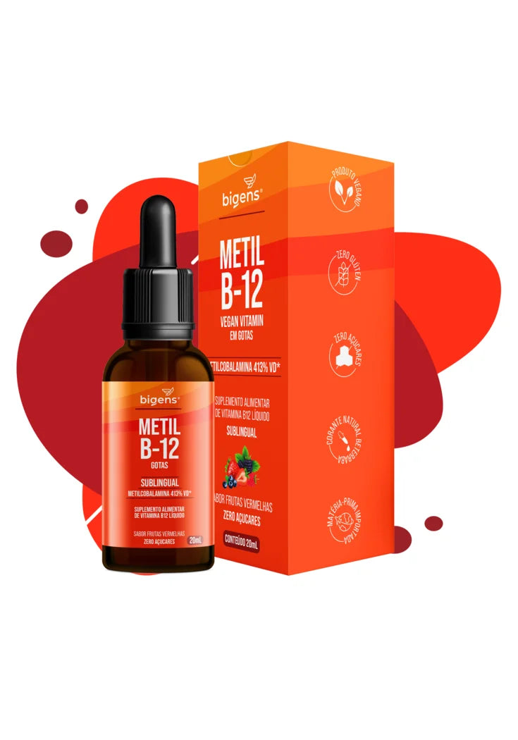 Metil B12 Líquida Bigens é um suplemento de Metilcobalamina, a forma ativa da vitamina B12, com alta biodisponibilidade e rápida absorção. Cada dose oferece 413% do valor diário de B12, essencial para funções como formação de células vermelhas, funcionamento do sistema imune e metabolismo energético. A suplementação é necessária, pois o corpo não produz B12, e sua deficiência pode causar alterações neurológicas, hematológicas e psiquiátricas.